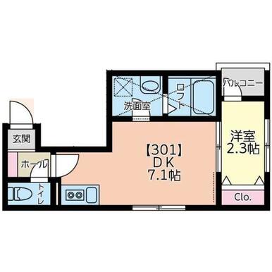| 間取り | 1DK(洋2.3DK7.1) | 主要採光面 | - |
